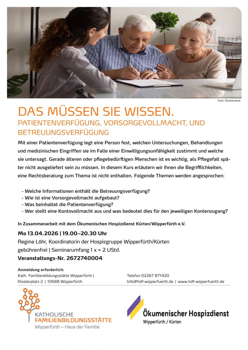 Der Eintritt ist frei, über eine Spende freut sich der ehrenamtlich tätige Hospizdienst sehr.